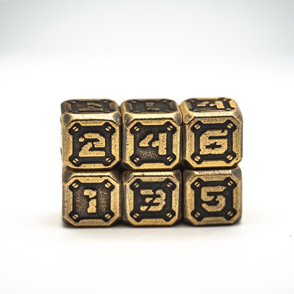 6 d6 Set with Case - Industrial Battleworn Gold