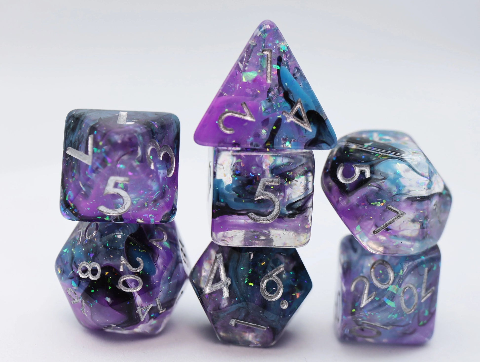 Contains: 7 polyhedral dice - D4, D6, D8, D10, D%, D12, D20 dice
